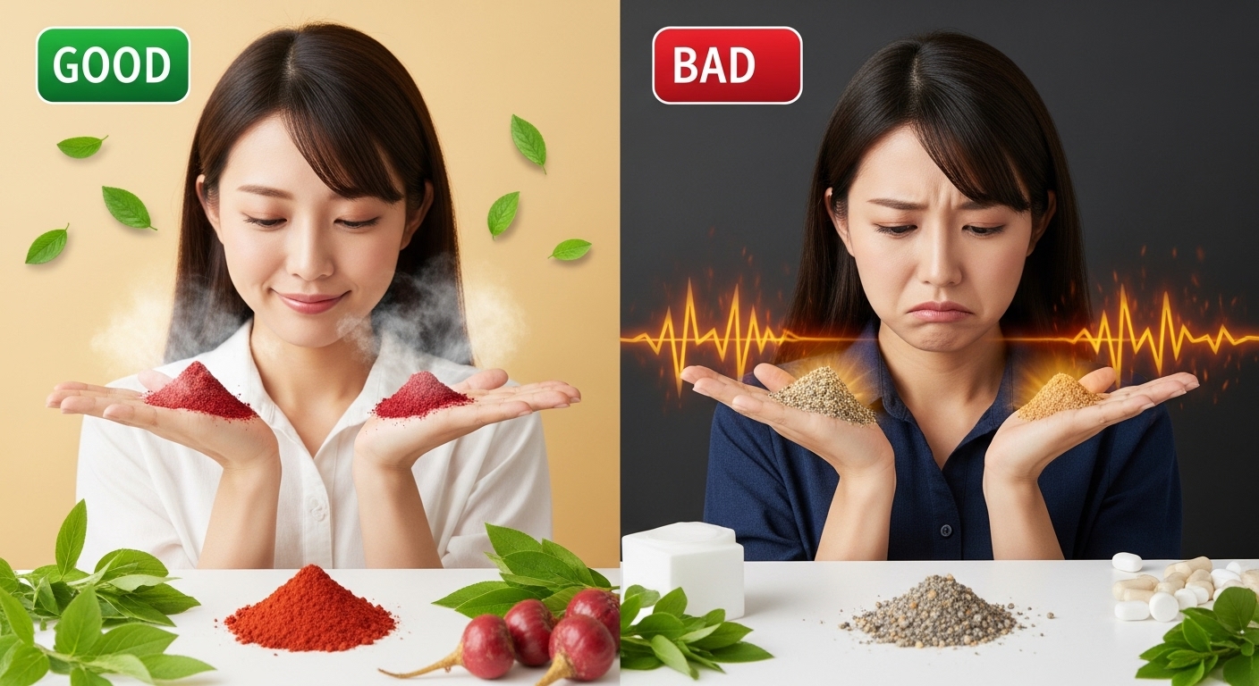 例:高品質な「オーガニック赤マカ(低温加工・無添加)」を選ぶべき理由