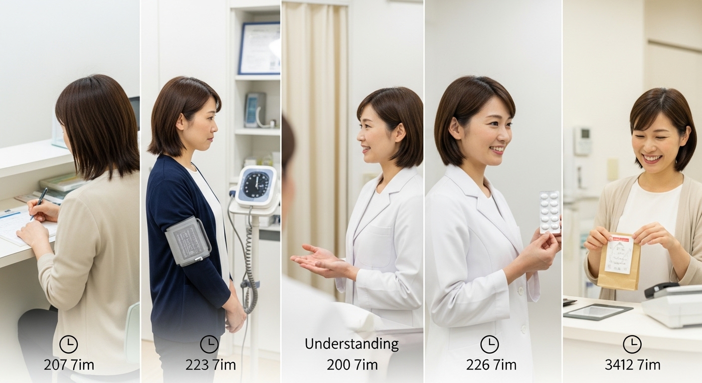 ここでは、実際にクリニックに行ってピルを処方してもらう場合の一般的な流れを、ステップごとに詳しく見ていきましょう。初めての場合、受付から会計まで全体の所要時間は30分〜1時間程度を見ておくと安心です。